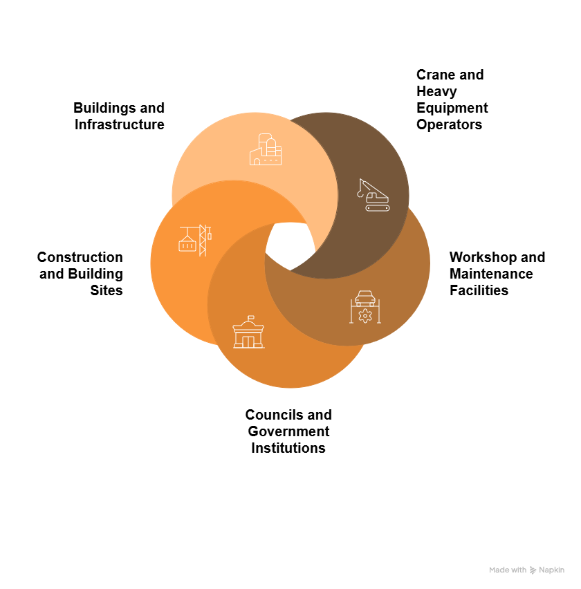 From cranes to cooling towers, workshop lathes to building lifts,SafetyMayte has the capability for live tracking and automatic updates if required.